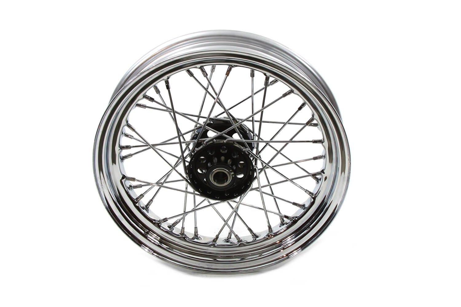- Chrome rim with black hub and stainless steel spokes (#40982-40CB)