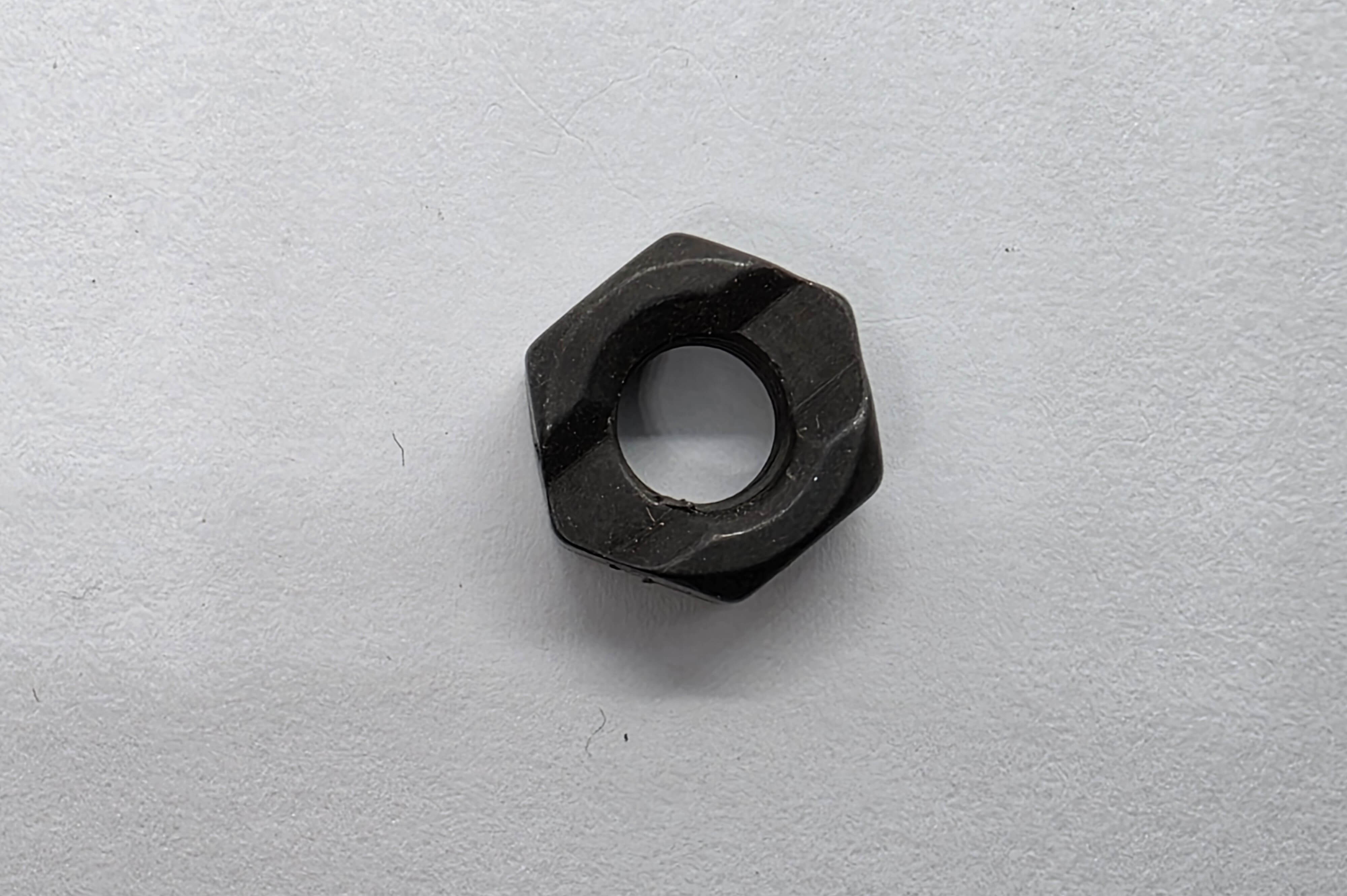 Clutch stud nut (grooved) in a black finish. Use with #38011-41 pressure plate spring retainer.