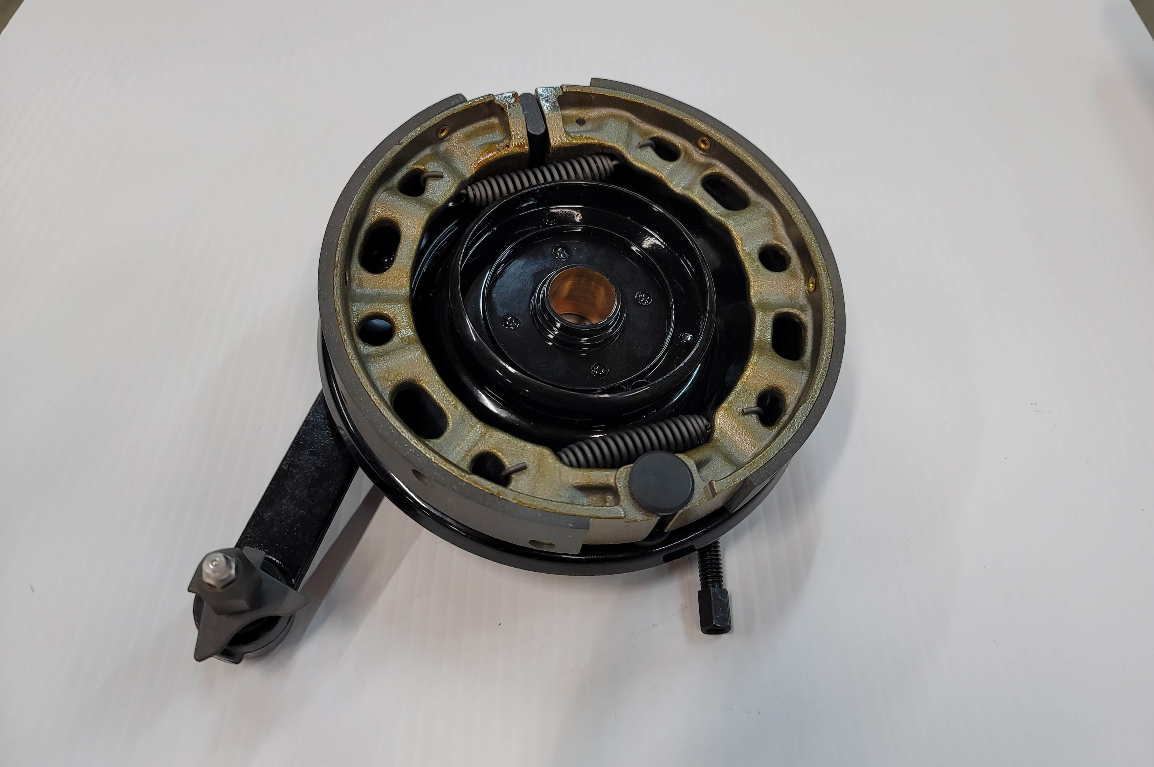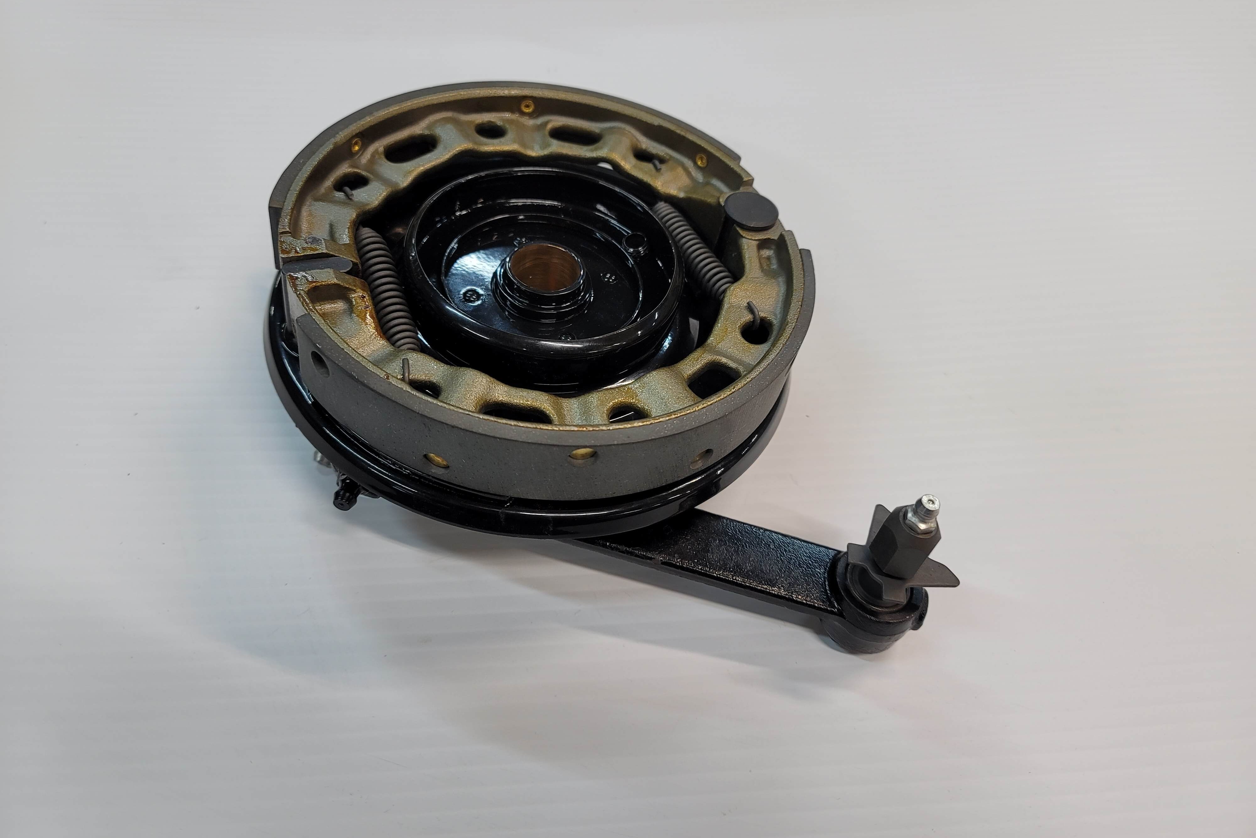 Front Brake Assembly Complete is for 1941-52 45″ Solo models. Bushing must be honed to fit axle sleeve. The brake cam hole must be reamed to 9/16โณ.